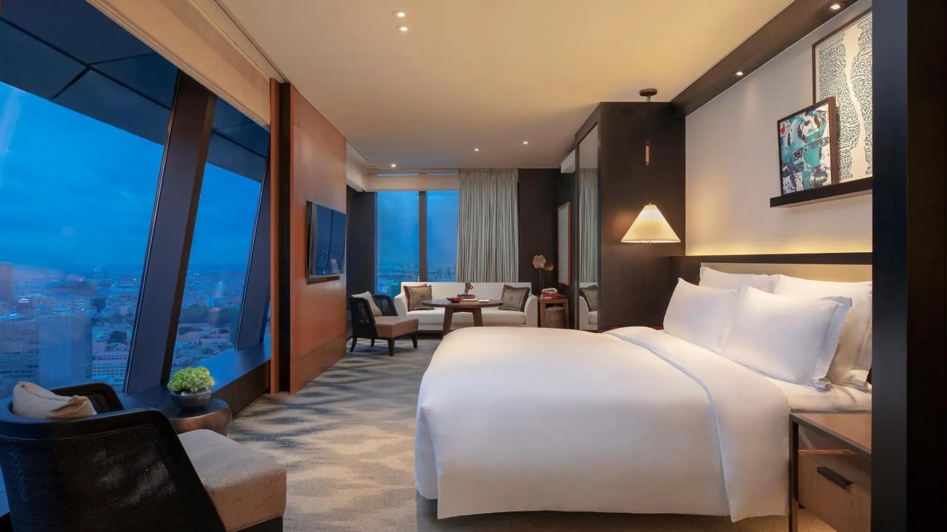 Les 184 chambres de Rosewood comprennent un vestiaire et un coin repas. Certaines chambres présentent une décoration élégante meublée d'un bureau. Dans ces chambres douillettes, vous pourrez profiter d'une TV à écran plat avec des chaînes satellite d'un minibar et d'une cafetière/théière. Dotées d'une douche à l'italienne et d'une toilette séparée, les salles de bains sont également équipées d'un sèche-cheveux et des serviettes. Les chambres d'Hotel Rosewood Phnom Penh donnent sur la ville.