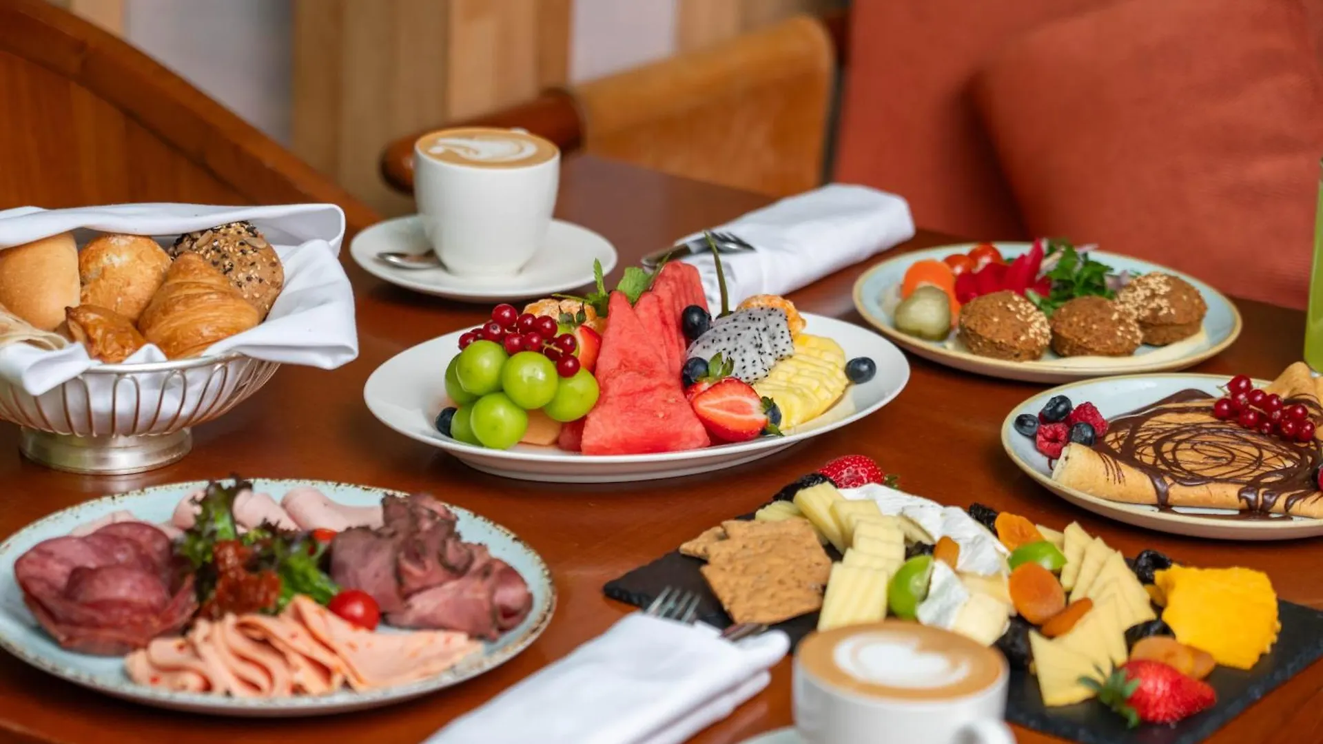 De restaurants Poolside en Al Nakheel bieden een grote verscheidenheid aan keukens, waaronder internationale keuken en keuken van het Midden-Oosten.