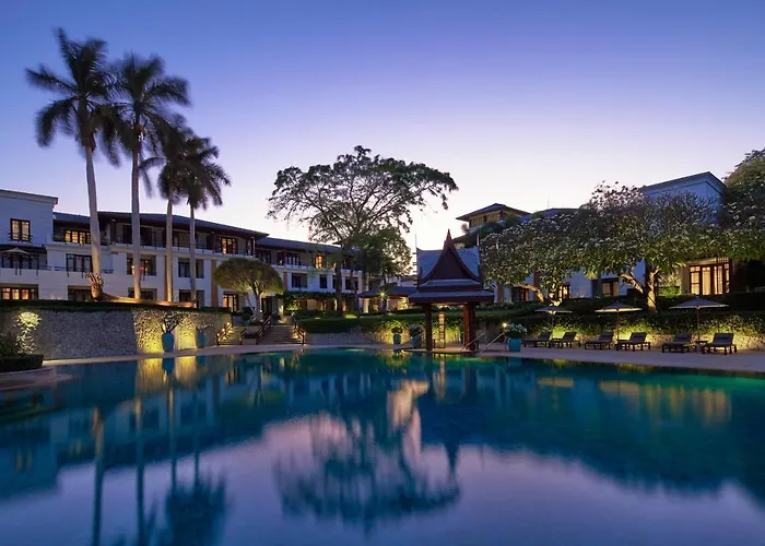Intercontinental Hua Hin Resort by IHG melds luxurious accommodations with family-friendly amenities. This upscale resort boasts a stunning heritage design and modern conveniences, providing various dining options from Thai to Mediterranean cuisine. Guests enjoy direct access to the pristine beach and an award-winning pool area. The resort also features wellness offerings, including yoga and water sports. Its strategic location near BlúPort Hua Hin Mall adds convenience to travelers looking to shop and explore.